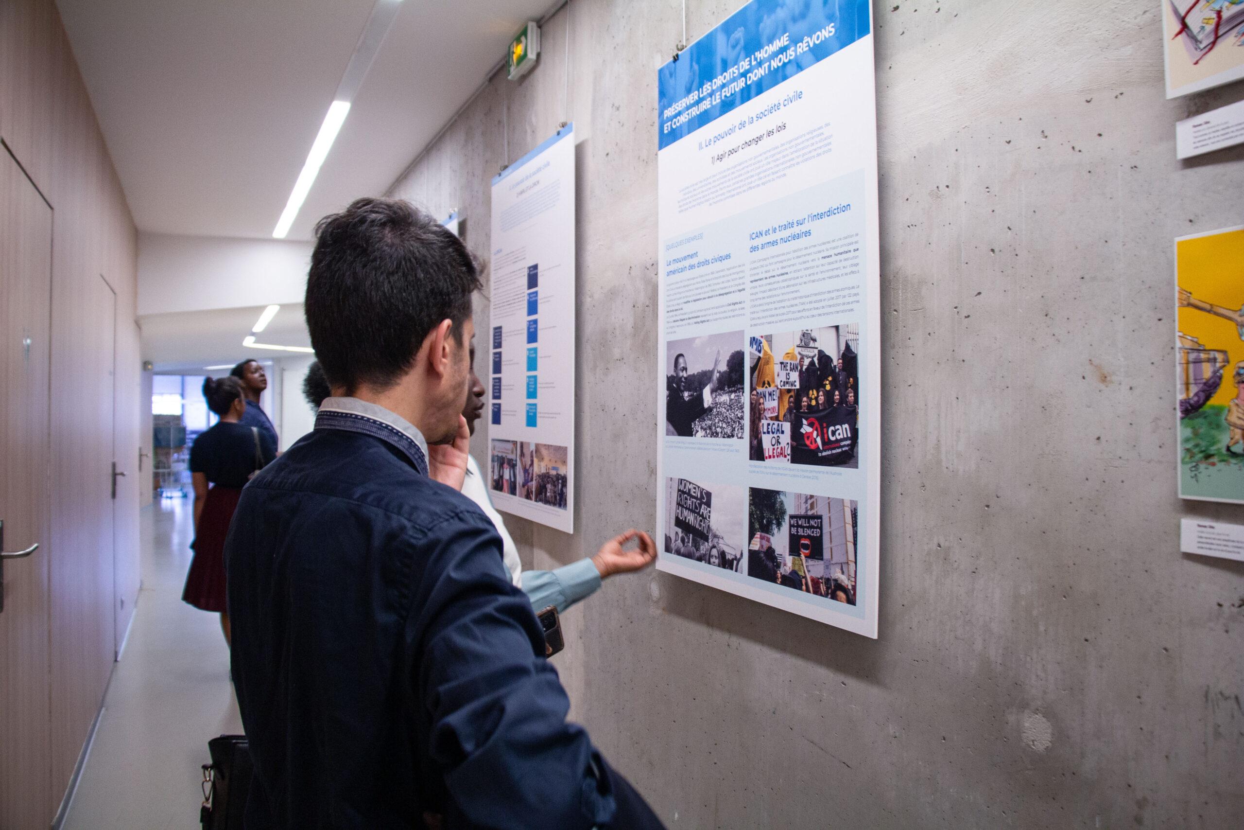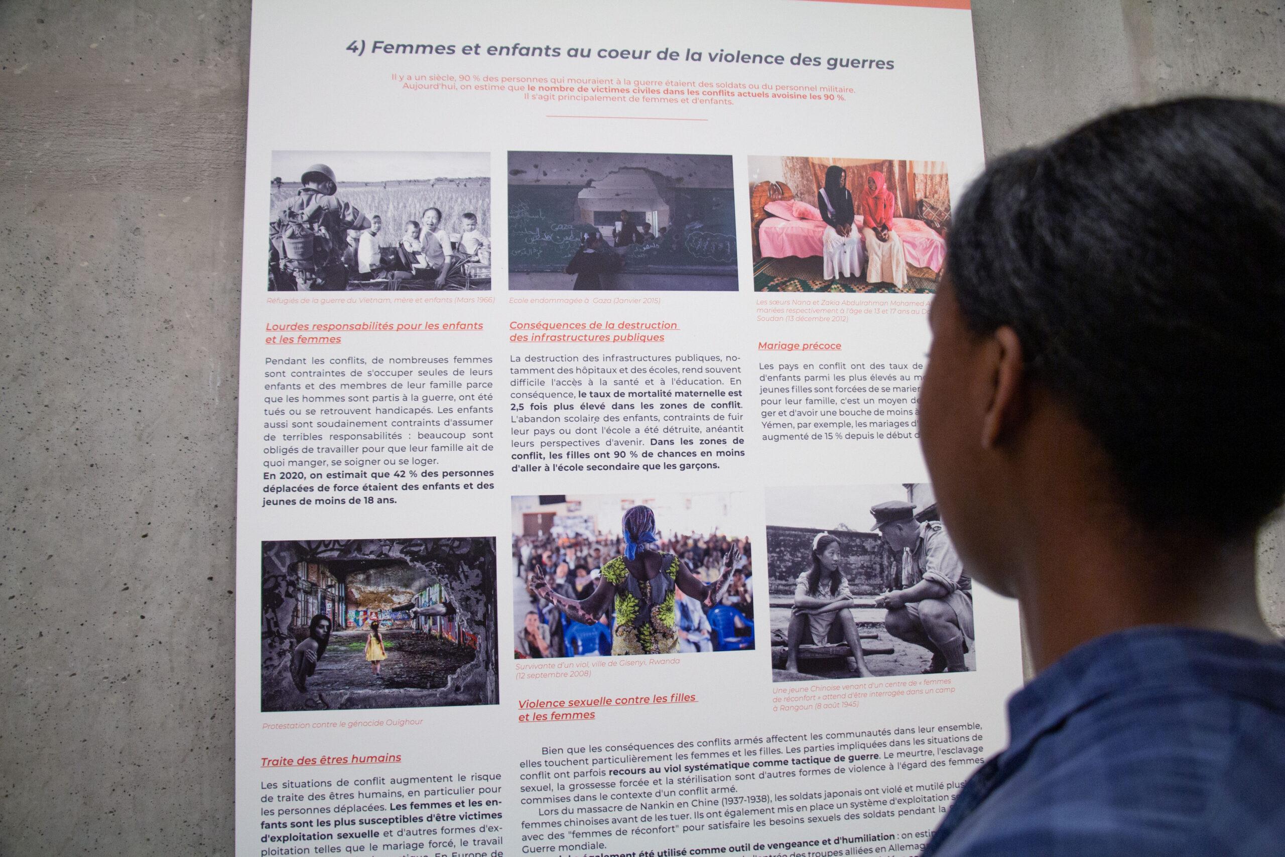 L’exposition « L’art du droit à la paix » est une exposition participative centrée sur les violations des droits de l’Homme en contexte de guerre et l’apport des organisations intergouvernementales et de la société civile pour la construction d’un monde de paix respectueux des droits fondamentaux.